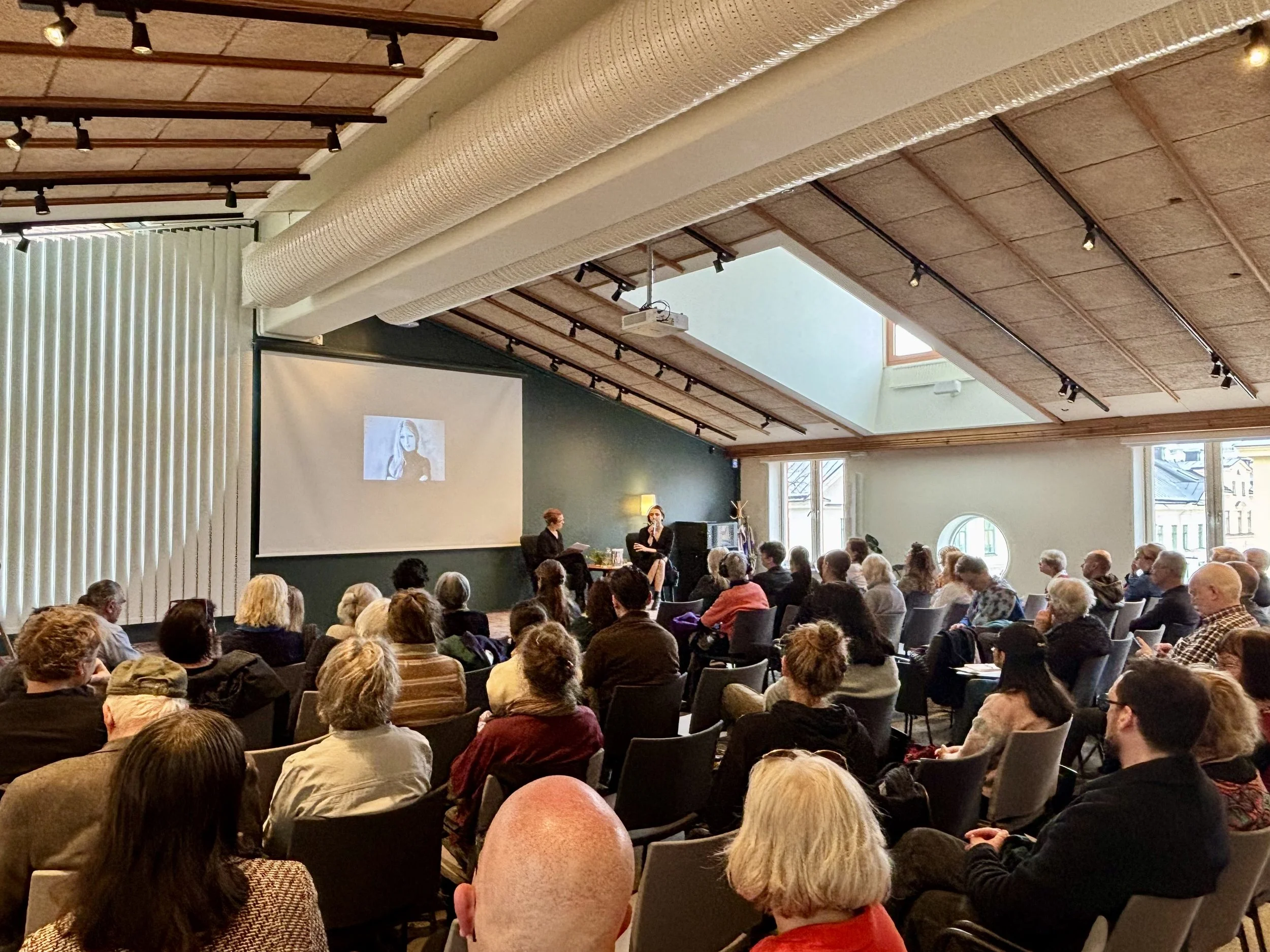 Samtalet om Viktoria Amelinas liv, verk och arbete samlade en fullsatt sal i Uppsala Stadsbibliotek. För detta speciella tillfälle reste Viktorias nära vän, journalisten och operativa direktören för PEN Ukraina, Tetyana Teren, från Ukraina. Hon samtalade med den svenska författaren och poeten Ida Börjel, som i sin litterära gärning engagerat sig i situationen i Ukraina och Belarus.